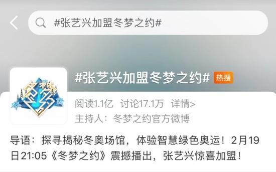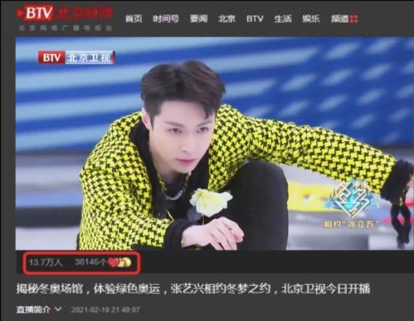 《冬梦之约》首期节目播出后,全网关注度持续升温!新媒体端热度不断,节目相关话题阅读总量破1.5亿,微博话题#张艺兴加盟冬梦之约#登上微博热搜榜第32位,娱乐榜第3位,《冬梦之约》节目登上微博综艺榜第6位。全网相关短视频累计播放量超600万。节目不仅增进了观众对冬奥会的了解,更是点燃了民众参与冬奥的激情和期待冬奥的美好愿景。网友们纷纷称赞“刚看完节目,太感动了!热血澎湃!”“领略冬奥魅力,感受炎黄子孙的热血!”“期待冬奥会!”。