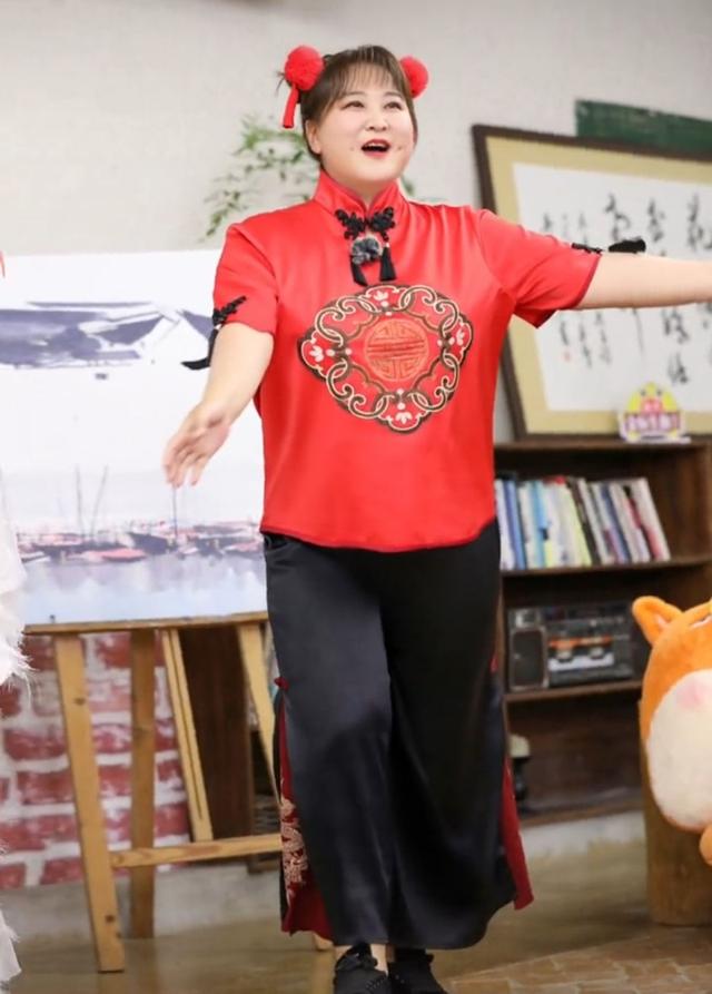 39岁的贾玲身形变瘦了许多,她穿着红色中国服装,小肚腩已经消失不见,整个人都比以前瘦了一大圈,五官看上去更为精致了。