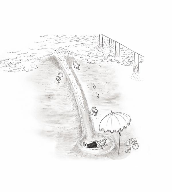 大海和海滩一直都是桑贝喜欢描述的,“对法国人来说,夏天度假有两个选择:要么去大海,要么去山里面。桑贝应该是大海党,海滩是桑贝非常重要的一个创作题材,比如桑贝画的爸爸在海滩上睡觉,小朋友很顽皮,挖了一条渠,要把海水引到爸爸身边。”黄雅琴说。