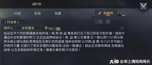 ,正所谓弱国无外交,在率土之滨的世界里这句话也是正确的,同盟的强大给了扬州【武门】在谈判桌上谈判的机会,不过如果只是有机会,扬州【武门】一味自大招人记恨,那肯定是得不到其他同盟的认可的,虽然我们看不到他们的谈判过程,但扬州【武门】外交不仅争取到了停战还让各大同盟认可了【武门】的实力,外交功不可没呀。好了,你们学到了吗?或者说还有没有补充的?