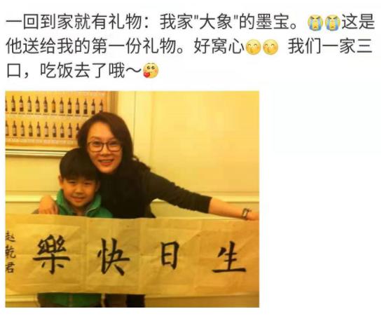有次陈数收到大象亲手制作的生日礼物,迫不及待地在社交平台上发文和外界分享这份喜悦。
