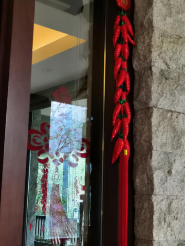 目测这张合影是在餐厅照的,三人身后有个很大的玻璃门。通过玻璃上的反光,可以看见屋顶上有个超大吊灯,装修看起来很有格调。