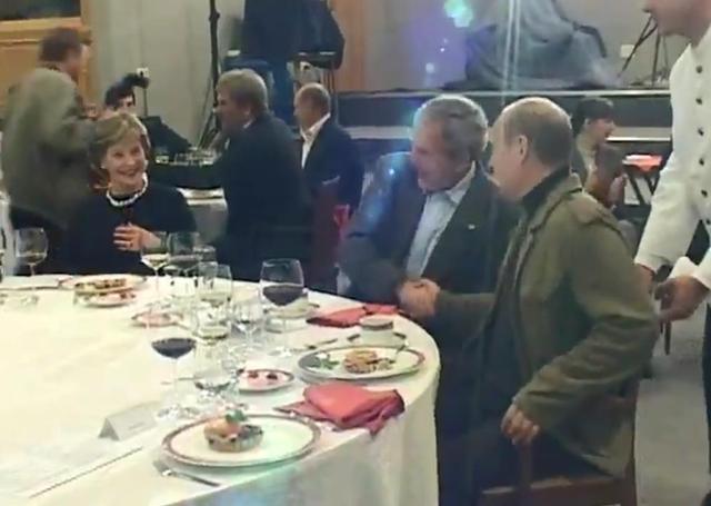 日前,俄罗斯克里姆林宫新闻部门决定公布一份2005年至2009年期间的录像档案。在这份曾经绝密的视频中,俄罗斯总统普京被拍到与时任美国总统小布什在一起跳了俄罗斯传统舞蹈的画面,小布什扭扭跳跳很开心,普京还亲吻了女舞蹈演员的手。