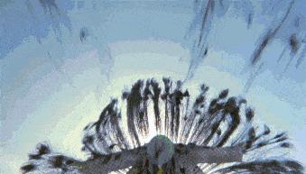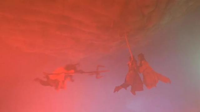 孙悟空抱着紫霞的尸体不愿放开,但是头上的金箍越收越紧,他只好松手,看着紫霞坠落。