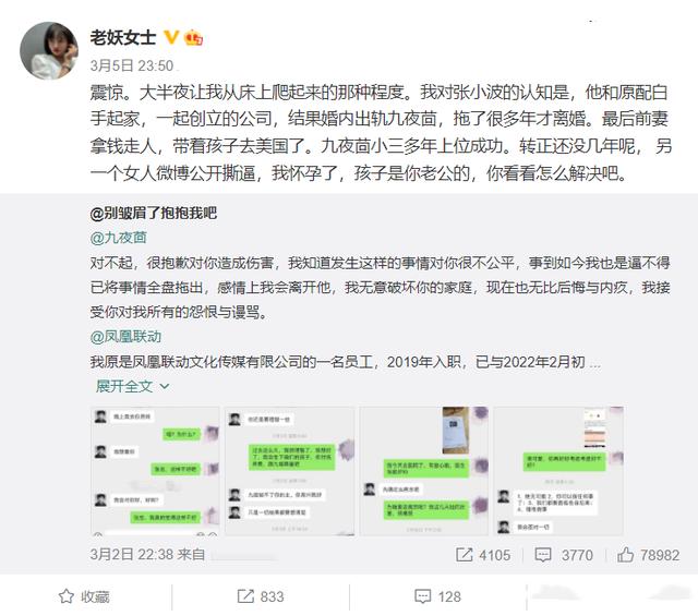 有意思的是在这个事情发酵的过程中,一位名叫“老妖女士”的网友爆料称当年九夜茴是小三上位,知三当三。