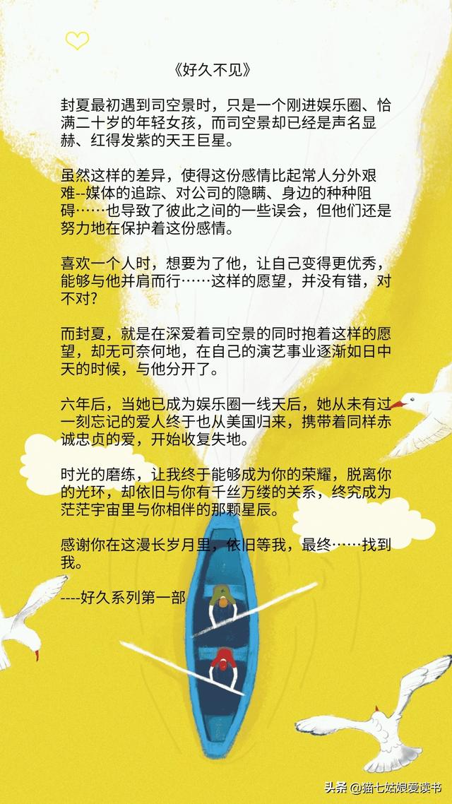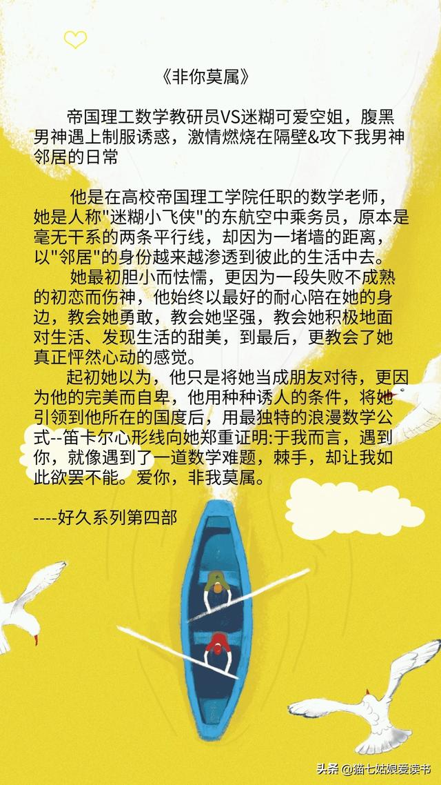 坚持认真推荐,真诚为大家送上好看的小说。大家有想看的小说或者小说类型也可以推荐,欢迎在评论区留言互动哦!关注猫七姑娘爱读书,还有更多精彩小说等着你,最后祝您阅读愉快!