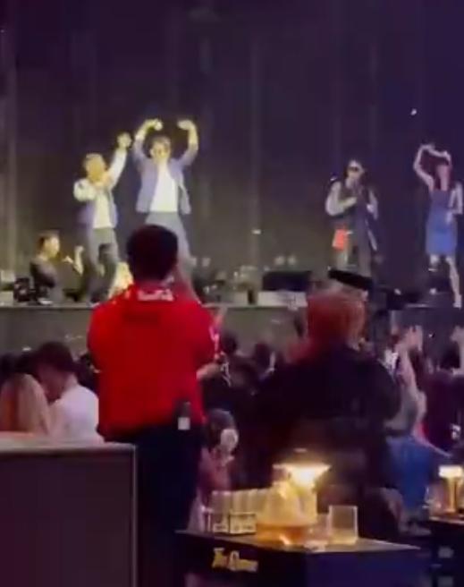 当时,台下坐着许多人,场面十分热闹,大家都跟随着音乐的节奏在跳舞。在音乐达到高潮时,靳东更是将双手举了起来,一边摆手一边摇头,看起来十分的开心,仿佛放飞了自我一般。