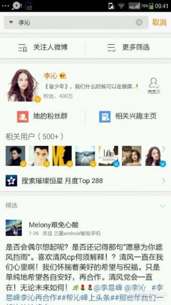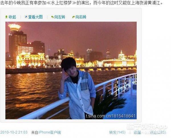 杨洋2010年9月开通微博,第一个关注的人就是李沁