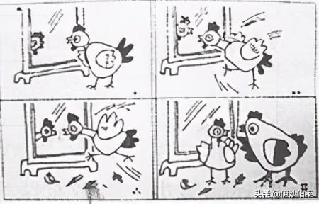 提示:认真观察下边的四幅图,小公鸡对着镜子做了什么?结果怎么样?最后鸡妈妈会对小公鸡说些什么话?小公鸡又明白了什么?用几句连续的话写一写吧。