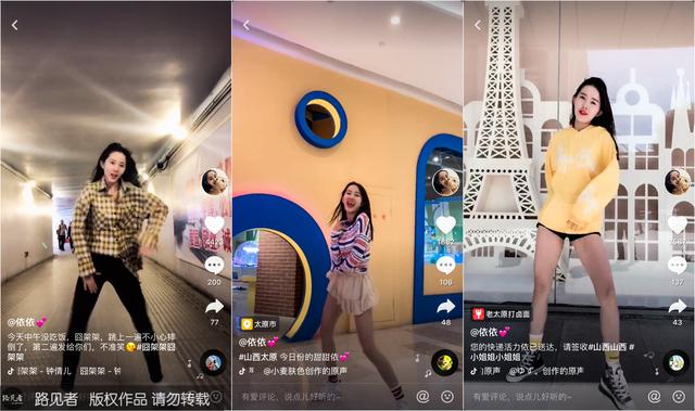据“依依”抖音号发布内容观察,由于山西大型足球赛事较少,依依大多数是作为CBA山西男篮赛场上的篮球宝贝出现,她的舞蹈技术扎实,圈粉无数。