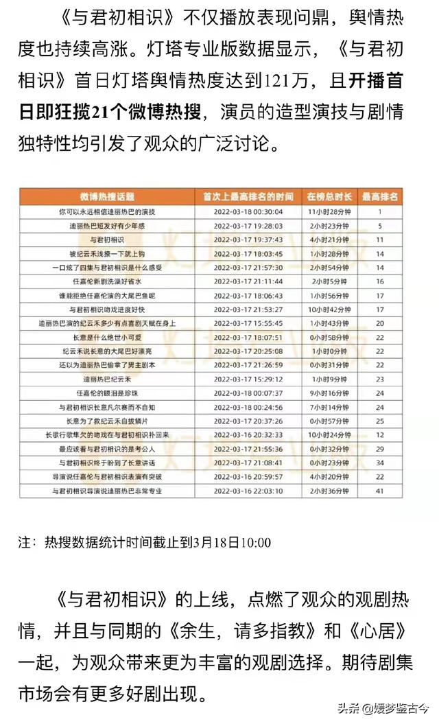 《与君初相识》是由迪丽热巴与任嘉伦领衔主演,讲述了驭妖女与鲛人冲破禁忌之恋,最后守得云开见月明的故事。
