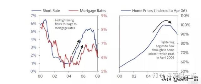 由于短端利率水平上行,导致持有短周期的资产吸引力变大,类似于现金资产。而持有长周期的资产吸引力变小,类似于股票,房子,债券等。资金从金融资产中撤出,导致他们的价值出现下滑。资产价格下跌,带来了财富效应的负反馈!