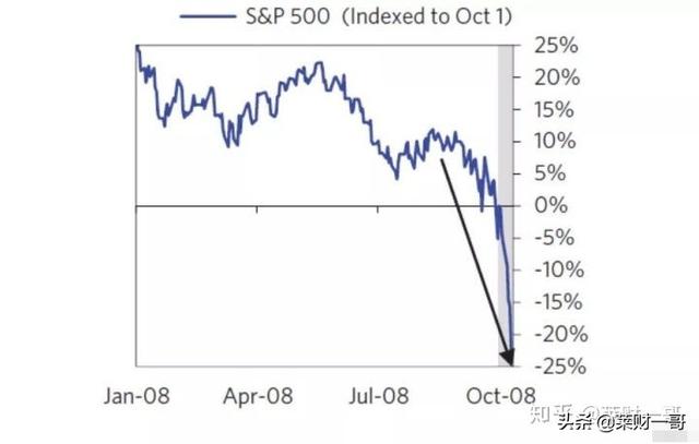 最终雷曼成为了美国历史上最大的金融企业倒闭事件,倒闭时持有的资产超过6000亿美元。这时候大家会担心规模更大的高盛以及JP Morgan出现问题。他们之间都是互相关联的,一个倒闭事件如同发生的“雪崩”。9月15日周一,雷曼倒闭事件导致市场大跌5%,金融股跌幅巨大。美国财长鲍尔森在之后其自传“峭壁边缘”中写过内心的无力感。