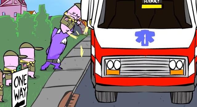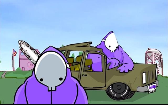 主角是一个浑身充满肌肉的紫皮人,老爸开车送他上幼儿园,开的过程中还撞飞了一个小朋友,我脑补一下场景。