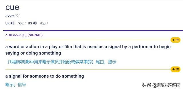在英文里,还有很多有关 cue 的短语和俚语,下面我们就来看看吧↓↓