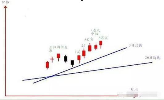 买点基准2:5日线上穿20日均线后出现先三阳后两阴(三阳必卖,两阴敢买)