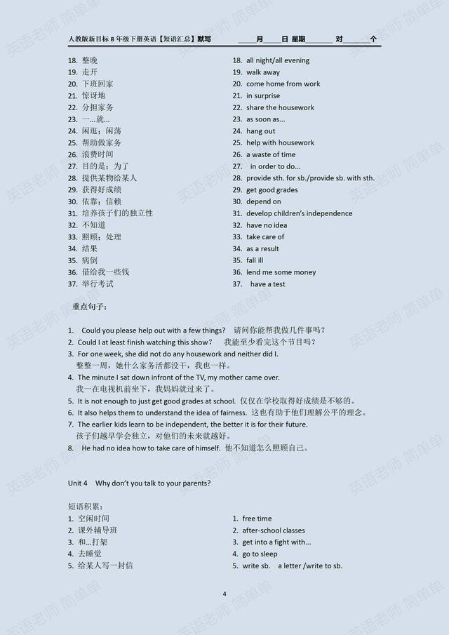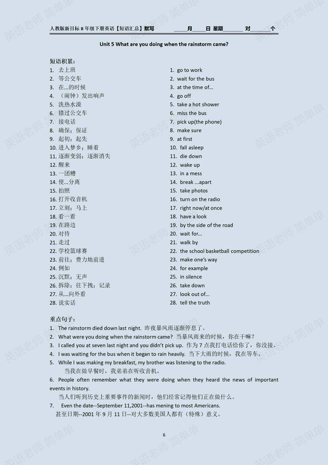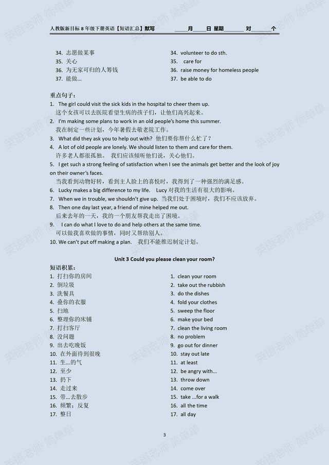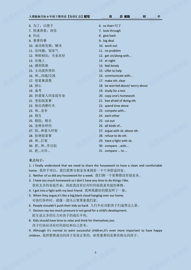 人教版新目标8年级下册英语Unit 1-5 ,单词、短语和重点句子, 我都把它归纳在这里,孩子们,
