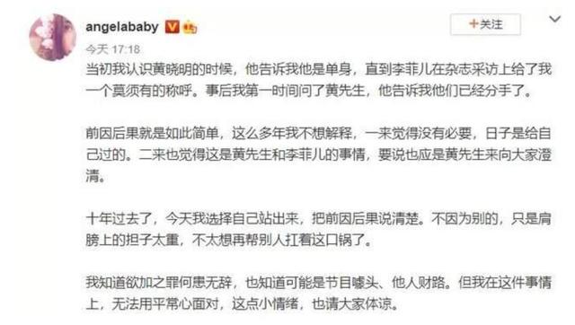 黄晓明跟baby年前官宣离婚的事,令不少人都始料未及。虽然两人婚变传了多年,但没想到真的离婚,竟如此突然。而在离婚官宣后,两人也声明了不会再做回应,将离婚影响降到了最低。