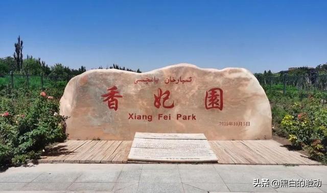 一进景区可以看到一块写有“香妃园”大字的石头,这块石头可不止是个标记,而是采自天山的香妃石。石头前端顶部高1.734米,与香妃出生时间1734年相吻合;中间顶端高1.788米,与香妃去世时间1788年相吻合;香妃石通长5.4米,与香妃在世时间54年相吻合。而且石头顶部轮廓恰似一横卧的少女,因而得名香妃石。