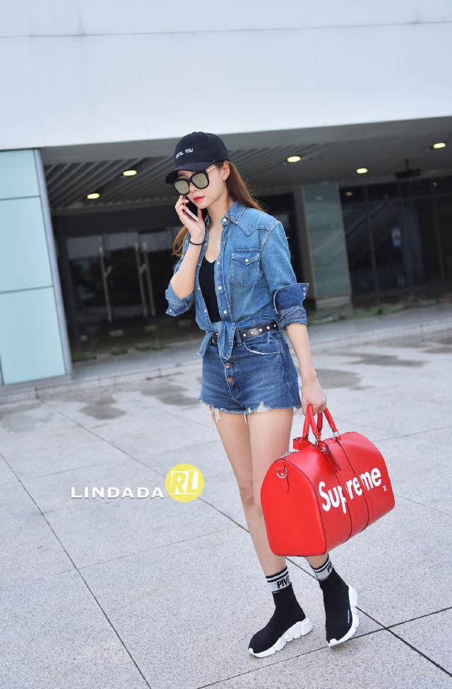 沈梦辰越来越会穿了,牛仔短裤搭配上衣,这一套很酷炫,鞋子搭配也很帅。