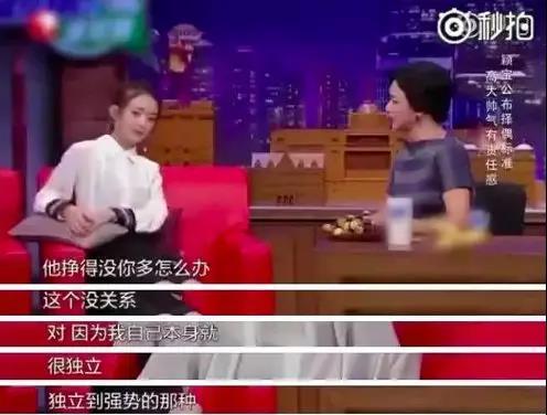 她还对金星说,男生收入不如自己没关系,自己本身就很独立,是独立到强势的那种。