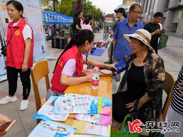 当日下午,在星光天地A馆和B馆之间的广场上,军鼓表演《军鼓声声振国威》拉开活动的序幕。随着音乐的转换,舞蹈《红领巾相约中国梦》、大合唱巜我的祖国》、歌伴舞《最美的歌唱给妈妈》、模特表演《又唱浏阳河》、集体朗诵《少年中国说》等精彩节目依次上演。精彩的演出吸引过往居民纷纷拿起手机相机拍照,并赢得阵阵掌声。舞台上演出精彩进行,舞台南侧的义诊、黄手环发放和急救知识技能演练现场也进行的如火如荼。看到老年人前去领黄手环,志愿者们认真登记、耐心讲解。医务志愿者耐心地为现场群众测量血压,讲解健康常识。河南·开封红豹救援队的志愿者则通过心肺复苏模拟人现场为大家传授、演练急救常识。听完志愿者的讲解,感兴趣的市民在志愿者的指导下用心肺复苏模拟人进行了胸外按压操作……“活动的内容很丰富,尤其是这个胸外按压的演练,学会后,能在关键的时候救家人、救他人,很实用,非常感谢这些志愿者。”居民张先生认真地说。