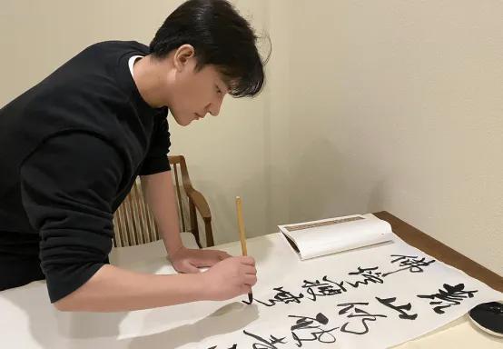 黄轩给她秀书法写了很多情诗,奈何美女一个字都看不懂。