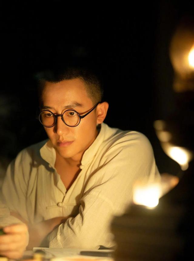 戴着黑框眼镜,穿着大衣的他,看起来斯斯文文的,演技炸裂。