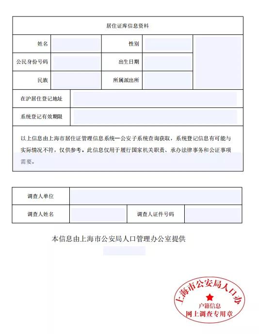 在沪居住信息,是指持有有效《上海市居住证》的被查询人在本市居住登记地址信息。