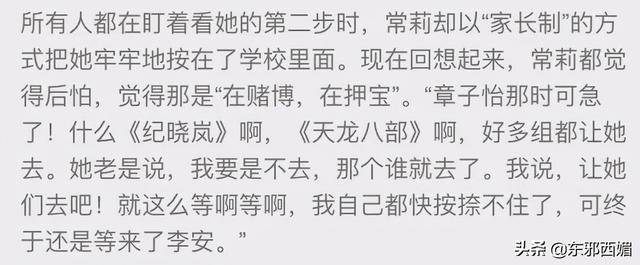 因此,一回南京,她就瞒着团里和家长偷偷去考北影,打算“弃舞从影”。最终被严重处分,演出停了学也没得上,遭遇人生最黯淡的一个冬季。