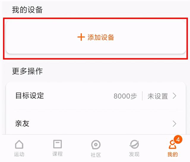 4、登录进入小米运动主页,在“我”界面点击“添加设备”按钮。
