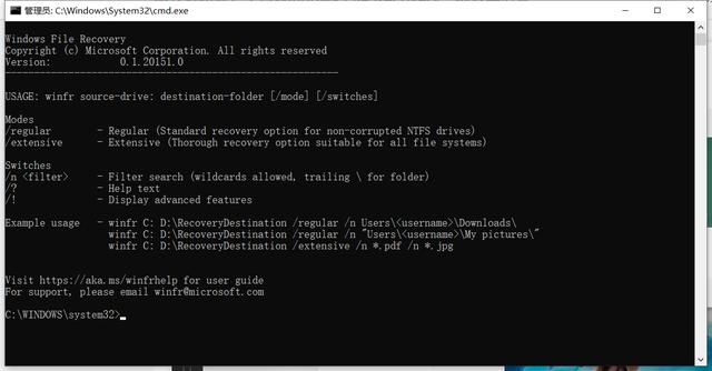 :Windows File Recovery对于系统的要求比较严格,支持window10系统及以上版本安装,大家可以在应用商店上面下载启动即可。整体界面非常的原生态,就是平常打开命令提示符的界面,需要一定的电脑操作能力,对于电脑小白来说会比较麻烦一些。