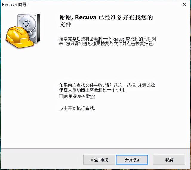 进入到准备查找页面,可以看到有一个深度搜索的选项,这个功能可以扫描到更加多的误删文件,如果你不想有漏网之鱼的话建议直接勾选,但是扫描的时间会延长一点,之后点击开始