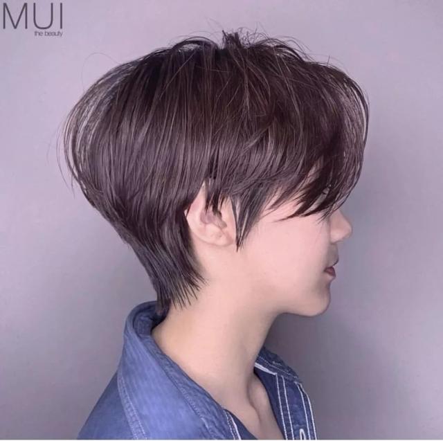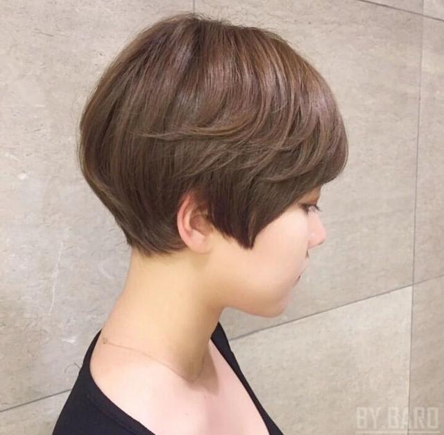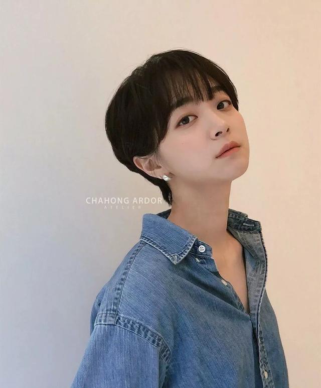 超短发确实更显身高也很流行,但是有一些妹子个子小,脸却不小,抛弃超短发可以尝试齐下巴的内扣波波短发或者直短发,直短发更自然小清新,内扣则更瘦脸。