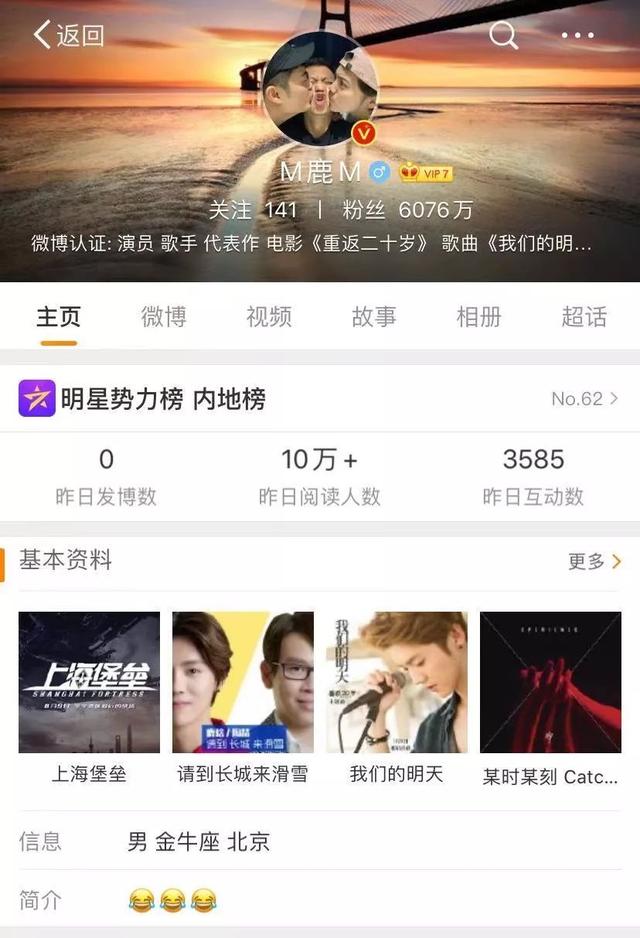 ,虽然话有点直接,但从鹿晗宣布了关晓彤之后的状况看,这话一点毛病没有。对了,鹿晗微博的阅读量是10万?,互动量是3000?。即便是很久没营业了,这个数据也还是有点可怕。