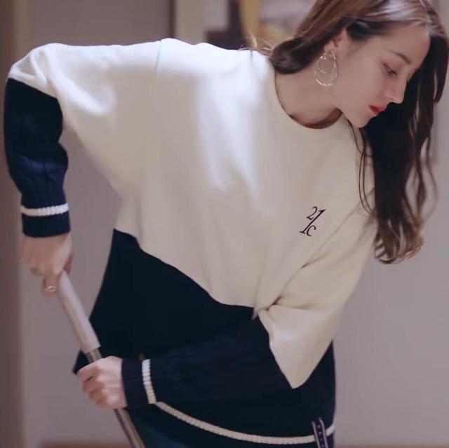 幸福触手可及周放迪丽热巴同款衣服韩版圆领宽版拼色毛衣针织衫女
