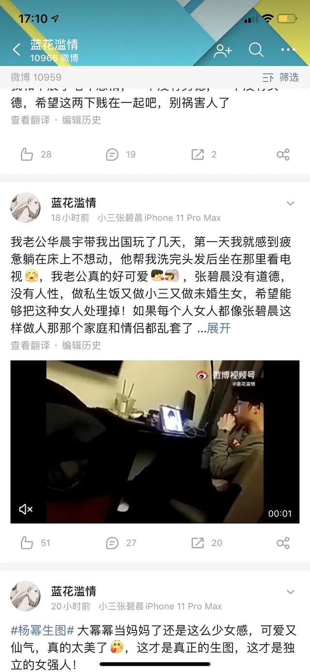 张碧晨小三插入我和华晨宇的感情,这视频是我老公华晨宇沐浴后的视频,张碧晨为了怕阻止我说她是小三,已经花钱禁言我两个账号