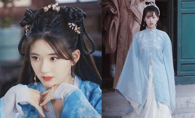无独有偶,袁冰妍在《祝卿好》中也挑战过蓝衣造型,同样美轮美奂~