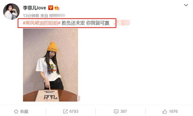 就在不少人推测李菲儿可能会退出节目录制时,1月21日上午,《乘风破浪的姐姐》官宣李菲儿,随后李菲儿本人也发了微博,似乎是意有所指,棋盘上还用棋子摆出了一个“赢”字,看得出来,李菲儿对这次的比赛很有信心。