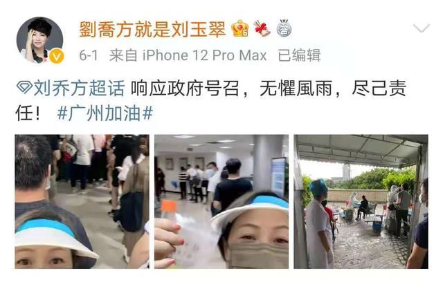 在广州疫情期间,刘玉翠还拍摄声援广州的视频,分享了自己在广州接种疫苗的微博,积极响应政府号召,为这座城市注入暖心的力量。