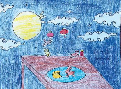 《玉兔送月》 梅兰妮作(8岁) (寄自荷兰)
