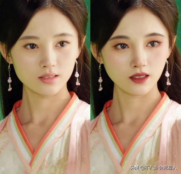 就算不改变脸型、发型,给她P上红眼影、野生眉,再配上煞白的肤色,瞬间有了鞠式灵魂,简直跟现在剧里的鞠婧祎一模一样。