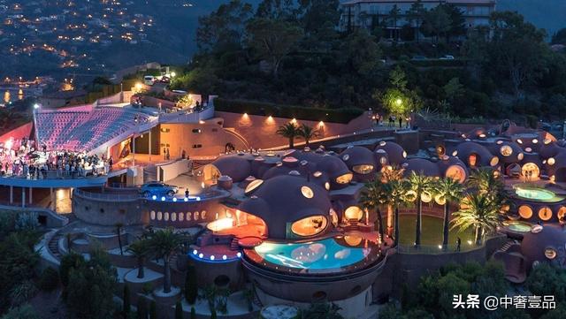 泡泡宫殿,顾名思义,这个房产的形状就像一个巨大的桃色泡泡,它与其他豪宅完全不一样。房间里你会看到圆柱床、游泳池和艺术品。该别墅由匈牙利建筑师安蒂·洛瓦格设计,除了住房外,这里还有一个可以容纳500个座位的户外剧场,可以俯瞰大海。