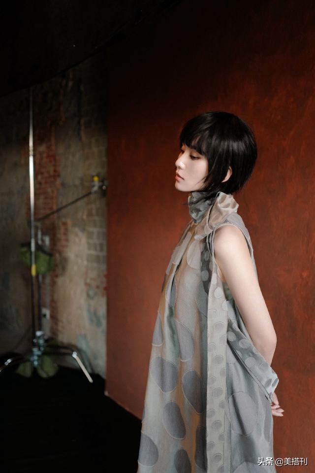 将发尾的头发从外翻变成内扣,瞬间变得乖巧文艺很多,内扣短发衬得刘诗诗脸小小的,侧身看,头型格外好看。刘海这时候变薄了一点,刘诗诗偏鹅蛋脸,不胖不瘦刚刚好,上镜比瓜子脸还优越。配上一款无袖波点裙,有一种忧郁又安静的气质,波点裙比较素净,刘诗诗总是能将素净偏沉闷的衣服穿出惊艳感。