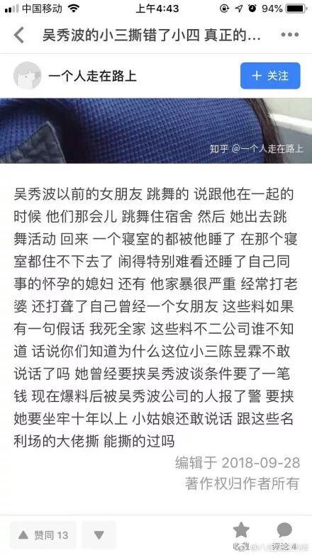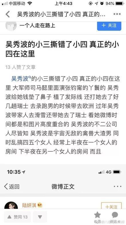 由于她提到的女明星到现在也没实锤,还反咬了吴秀波几口,所以我们先跳过小四小五的名字。