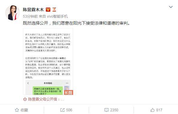 直到几个月后,陈昱霖的父母上网爆料女儿被抓,才有人翻出了这一条发布于9月28日的文章。