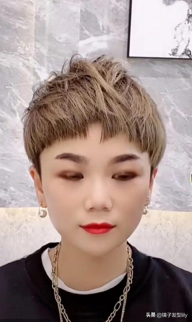 这种超短的不规则刘海对于圆脸型的女生也是比较不错的,能中和脸部太过圆润的线条,增加立体的效果。