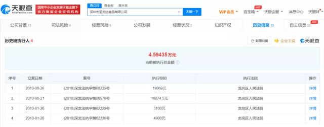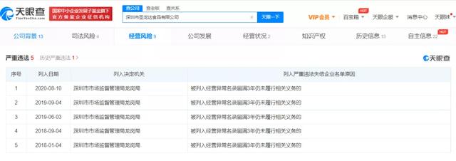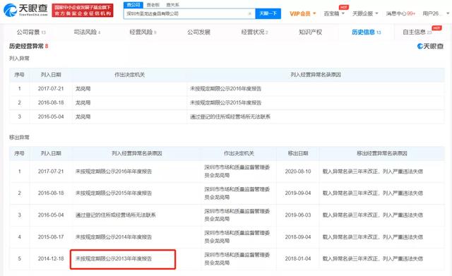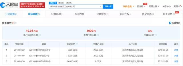 不过,2010年,深圳市圣龙达食品有限公司就被列入失信被执行人之列了。