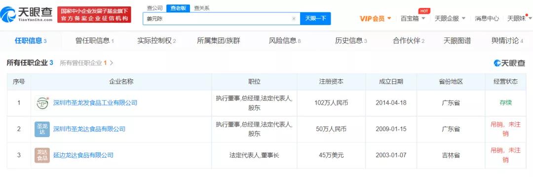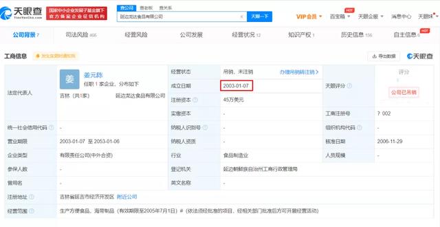 天眼妹捋了一下时间线,这三家公司中,延边龙达食品有限公司是成立时间最早的,2003年就注册了。