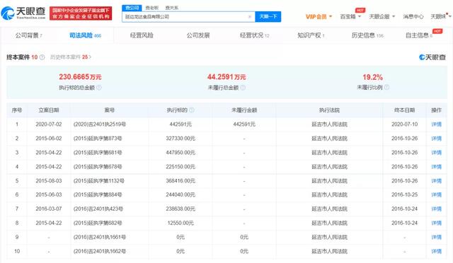 这家公司的法律诉讼也不少,天眼妹看到多为民间借贷纠纷,目前延边龙达食品有限公司依旧有终本案件,未履行金额达到了40万。